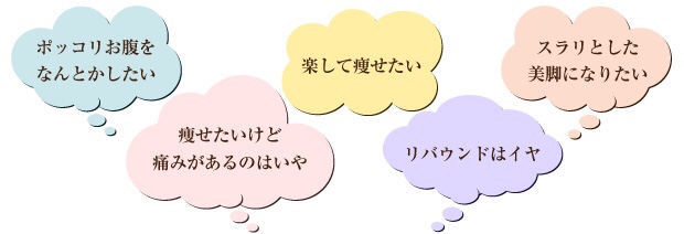 個人差はありますが、週1回30分~40分の治療を4~6回行うだけで、腹部の場合、1回の施術で平均2~3cm、トータル4回の施術で5~10cmのサイズダウンが可能です。